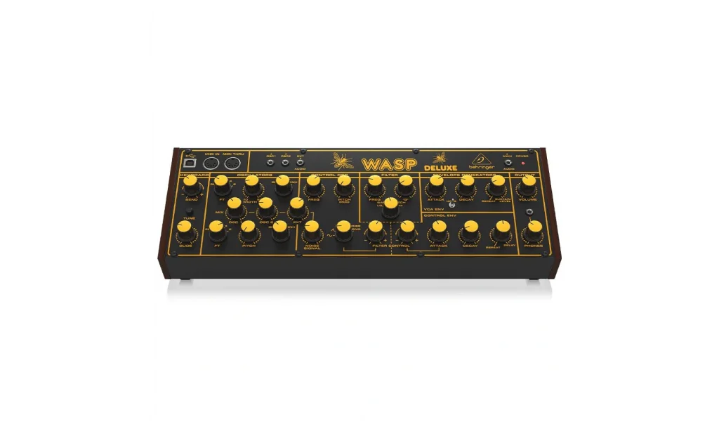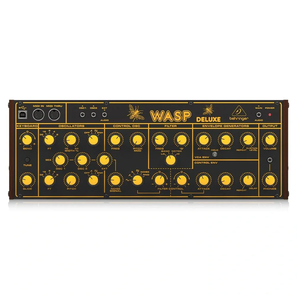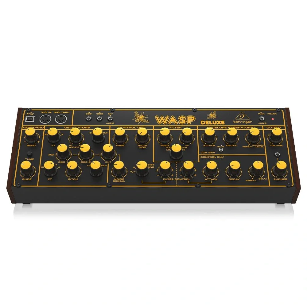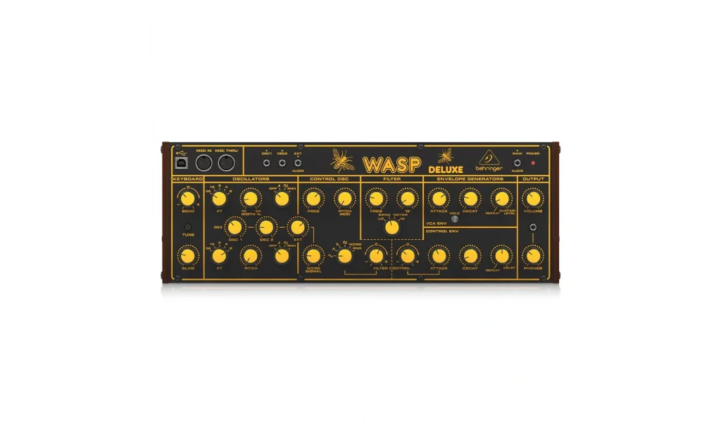 Behringer Wasp Deluxe, iki dijital kontrollü osilatör ile donatılmış monofonik bir analog synthesizerdır. Bu osilatörler, 0.5 Hz’den 100 Hz’e kadar LFO ve çok yönlü VCF ile geniş bir frekans aralığı sunar, böylece kullanıcılar yaratıcı ses tasarımlarını genişletebilirler. VCA ve VCF zarfları ile sesin dinamiklerini detaylı bir şekilde kontrol edebilirsiniz.
