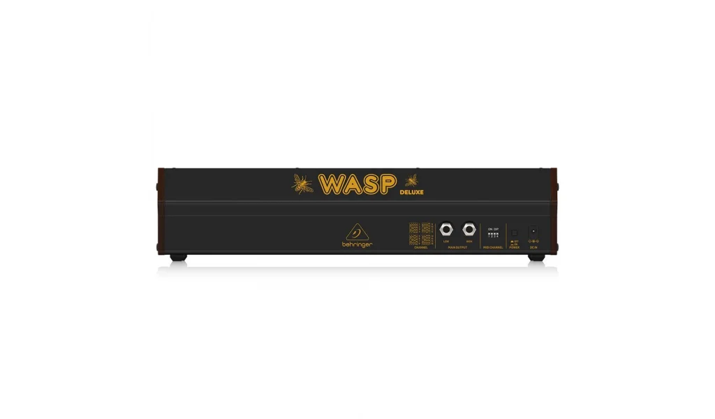 Wasp Deluxe, MIDI In/Thru bağlantıları ve Class compliant USB 2.0 bağlantısı sunarak geniş bir cihaz yelpazesiyle uyumluluk sağlar. Ayrıca, 1/4″ TS jaklar üzerinden yüksek ve düşük çıkış seçenekleri sunar ve bu da cihazı hem stüdyo hem de canlı performans ortamları için uygun kılar.
