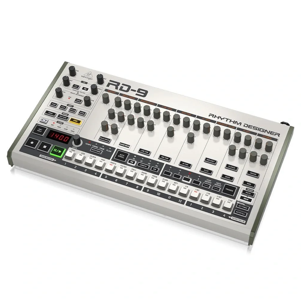 Behringer RD-9, bass drum, snare drum, low tom, mid tom, hi tom, rim shot, clap, closed hat, open hat, crash ve ride olmak üzere 11 farklı analog ses sunar. Her bir ses türü için detaylı ayarlar yapılabilir; örneğin bass drum için ton, seviye, saldırı, çürüme, tonlama ve çırpma ayarları mevcuttur. Bu, kullanıcıların istedikleri ritmi ve tonu mükemmel bir şekilde şekillendirmelerine olanak tanır.