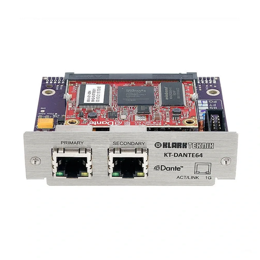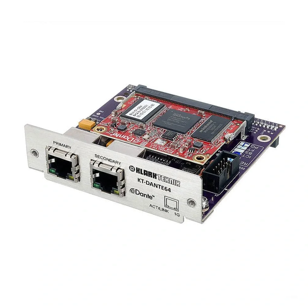 KT-DANTE64, Klark Teknik’in DN9650 ve DN9652 Ağ Köprüleri için geliştirdiği bir ağ modülüdür ve Audinate Dante protokolü ile uyumludur. İşte bu modülün öne çıkan özellikleri