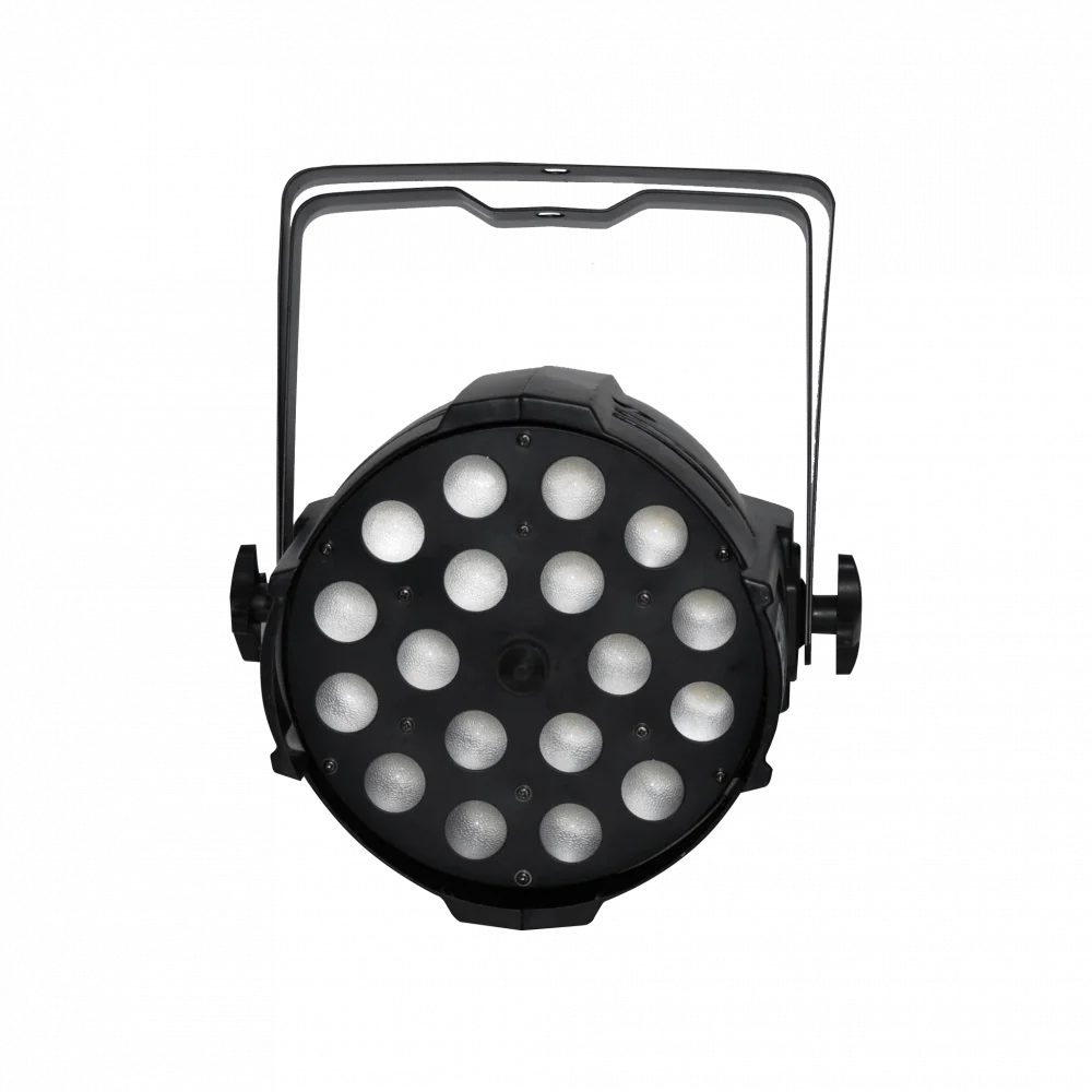 18 adet yüksek performanslı 12 watt LED, 30° ışın açısı ve güçlü 28.000 lüks ile yumuşak pastel tonlardan zengin, sıcak renk tonlarına kadar çok çeşitli RGBWAUV renkleri üretirken, 3.000 Hz yenileme hızı titreşimi ortadan kaldırır. Konveksiyon soğutması nedeniyle çalışma son derece sessizdir.