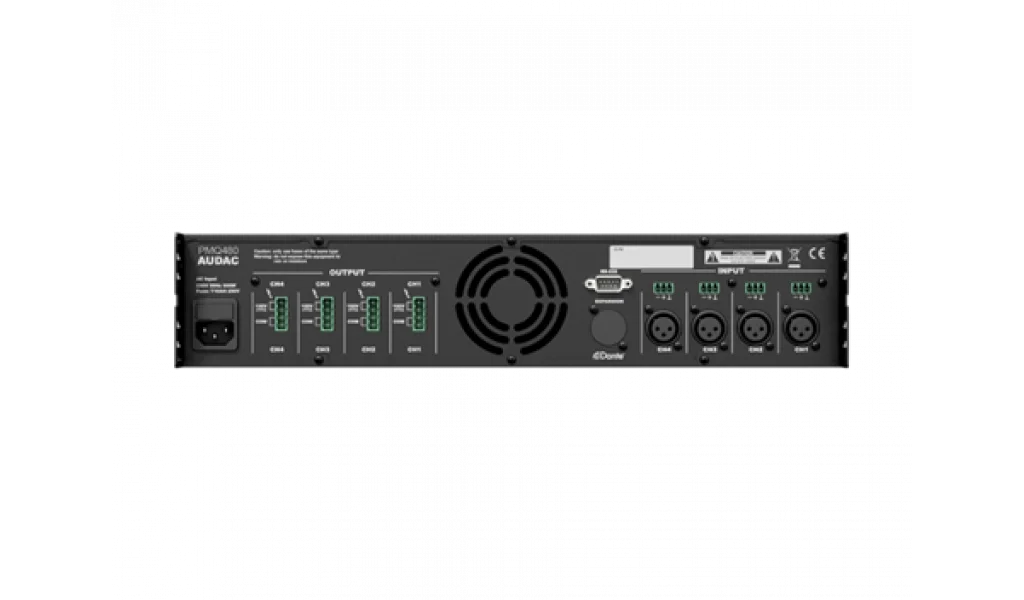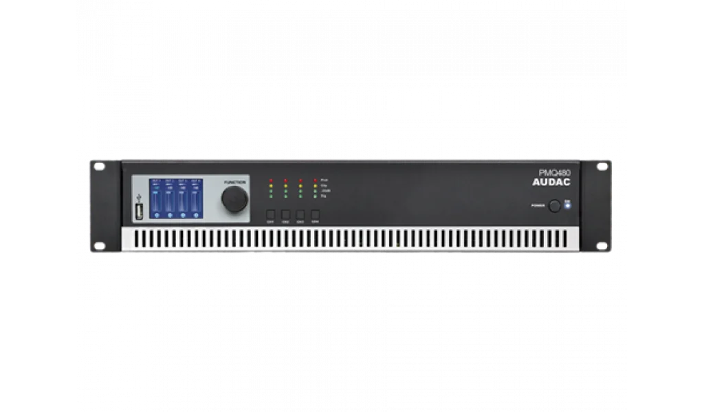 Audac PMQ480, her kanal için 480 Watt çıkış gücüne sahip dört kanallı Sınıf D 100V güç amplifikatörüdür. 2,5 inç LCD ekran ile WaveDynamics ™ DSP işlemci kombinasyonu, kolay yapılandırma için sezgisel işlevlere genel bakış ile eşsiz bir kullanıcı deneyimi sunar.