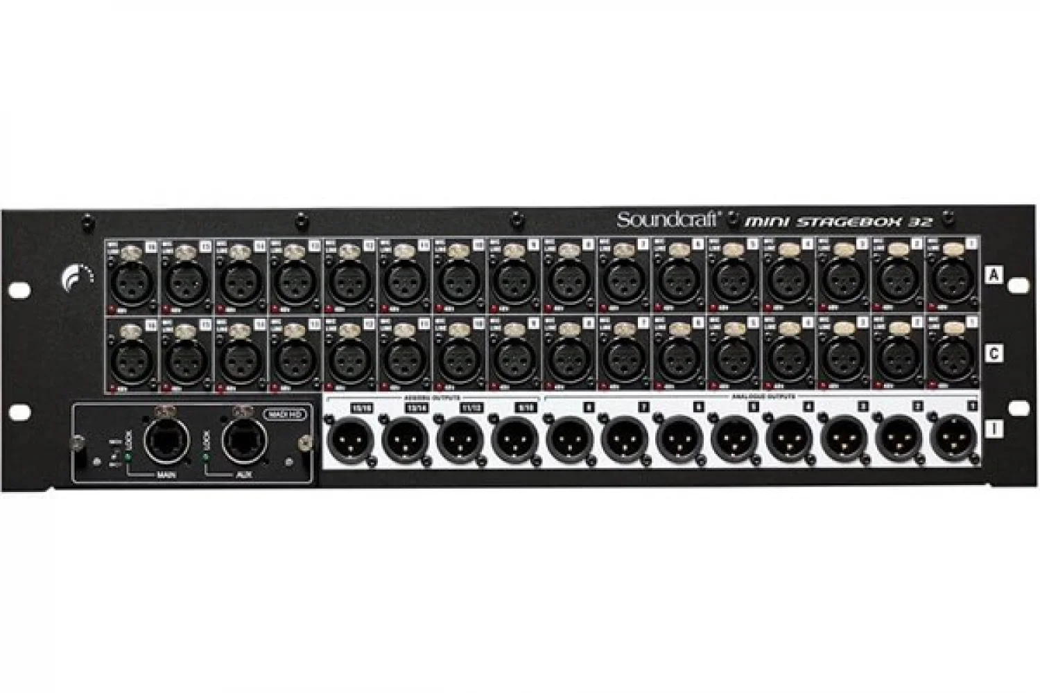 Mini Stagebox 32R (3U), 4 çift AES çıkışı ile 32 analog giriş ve 8 analog hat çıkışı sağlar, toplam 32 giriş ve 16 çıkış I/O kapasitesi sağlar, Mini Stagebox 16R (2U) modeli 16 analog sağlar 16 x 8 matris oluşturan girişler ve 8 satır çıkışlar. Opsiyon kartı yuvasına takılan bir MADI kartı aracılığıyla Soundcraft Si Expression, Si Compact, Si Performer, Si Series ve Vi Series konsollarından herhangi birine bağlanırlar.
