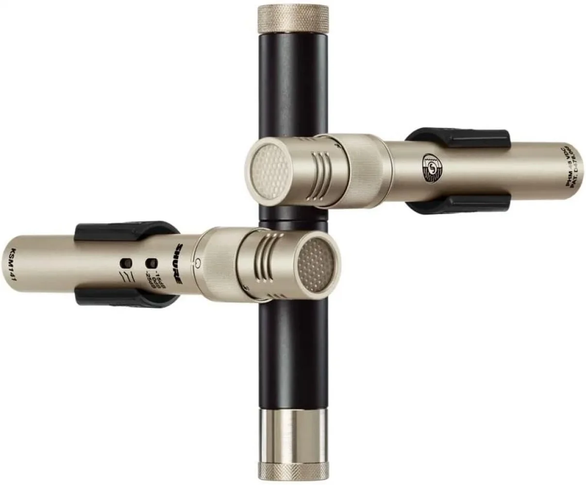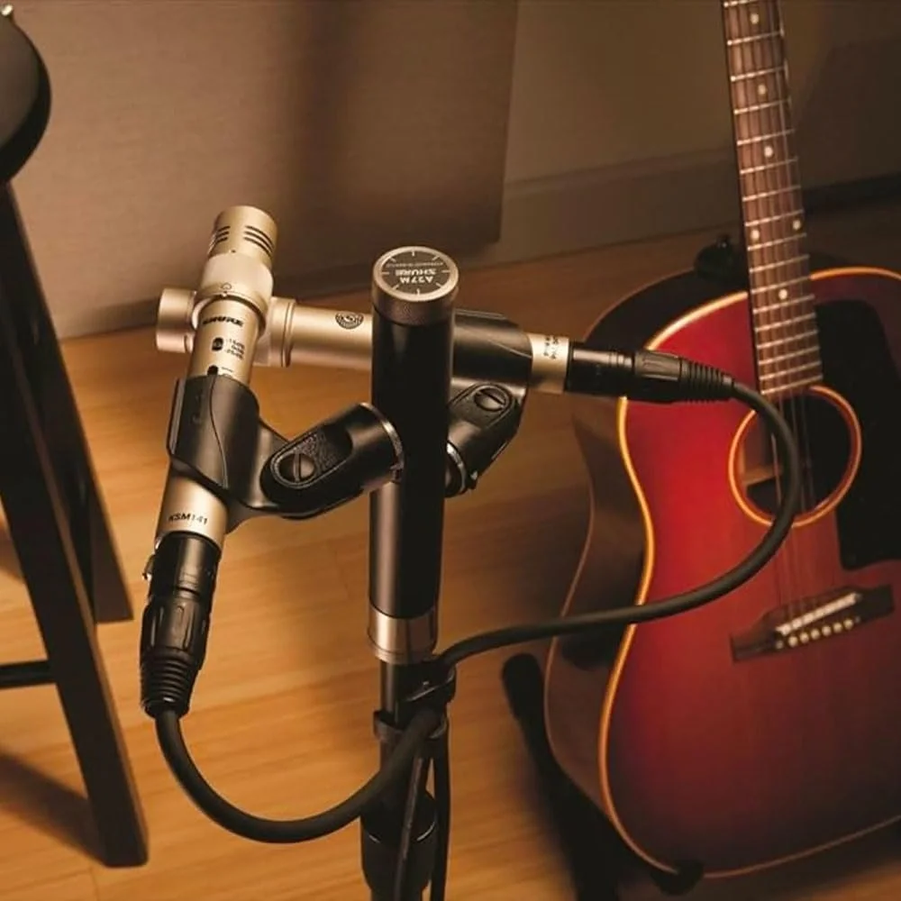The KSM141/SL Stereo from Shure is a switchable polar pattern, condenser studio microphone pair designed for instrument recording and sound reinforcement. The microphone capsule is switchable between a true omni-directional and a cardioid pattern using a rotating collar. The omni-directional pattern offers a greater pick up area, while cardioid offers attenuation of noise and ambiance at the off-axis sections of the microphones.