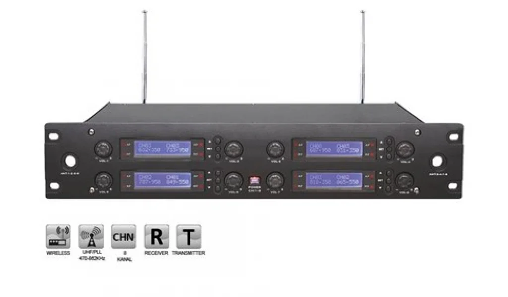 PLL Teknolojisi ile 8 kanal wireless mikrofon alıcısı.