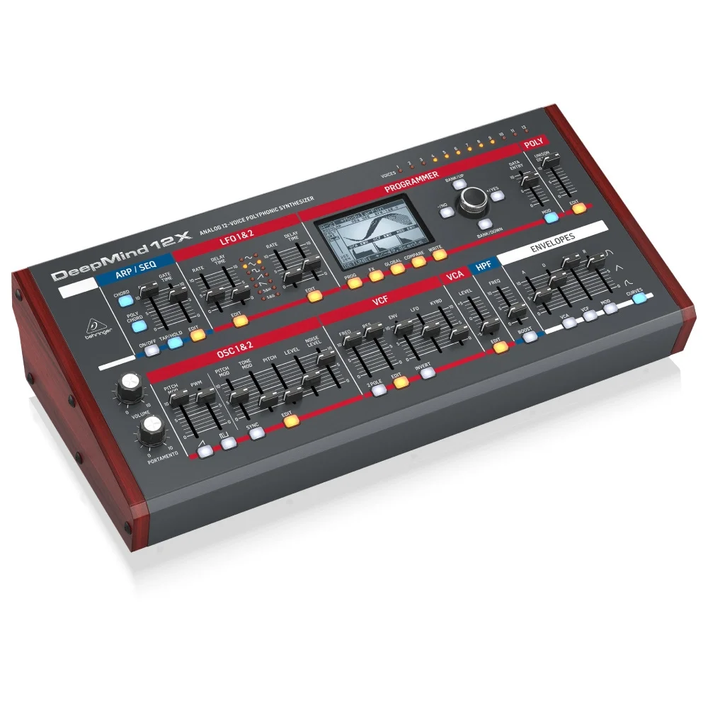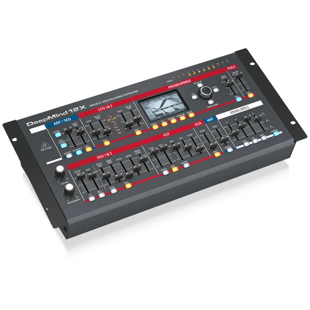 Behringer DeepMind 12X Analog Synthesizer, klasik analog sentezin onlarca yıllık mirasını modern teknolojiyle buluşturan, son derece güçlü ve esnek bir sound tasarım aracıdır. 80’lerin ikonik tasarımından ilham alan bu model; vintage karakteri, gelişmiş kontrol seçenekleri, geniş bağlantı imkanları ve sahne/stüdyo uyumlu yapısıyla günümüz müzisyenleri için üst düzey bir çözüm sunar.