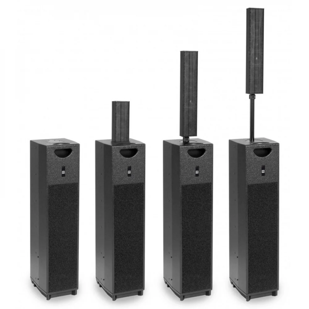 Aktif hepsi bir arada ses sistemi, entegre 600 W Sınıf D güç amplifikatörü ve dört kanallı karıştırma konsolu içerir.