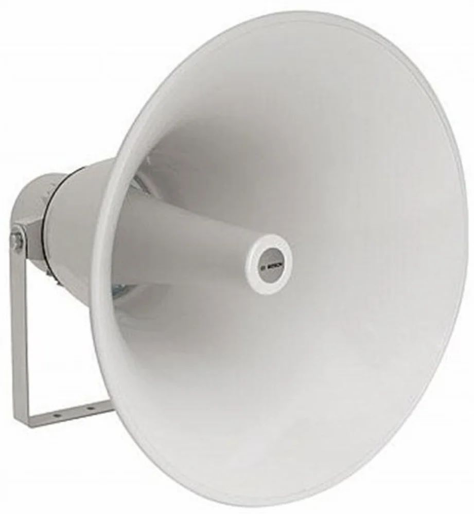 Bosch high-efficiency horn loudspeakers provide excellent speech reproduction and sound distribution for a wide scope of outdoor applications. They are ideal for sports grounds, parks, exhibitions, factories and swimming pools. The LBC 3484/00 is a circular 50 W horn loudspeaker, measuring 490 mm (19.6 in) in diameter. They are made from aluminum.