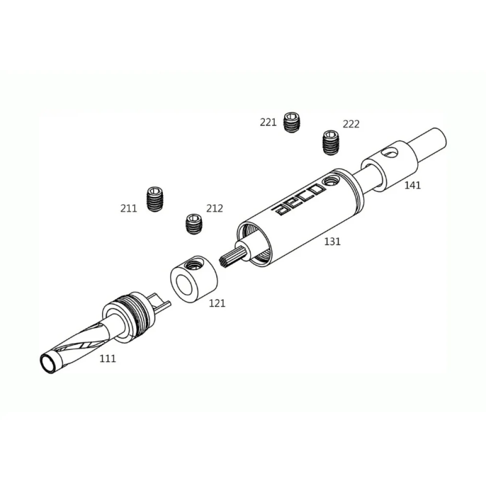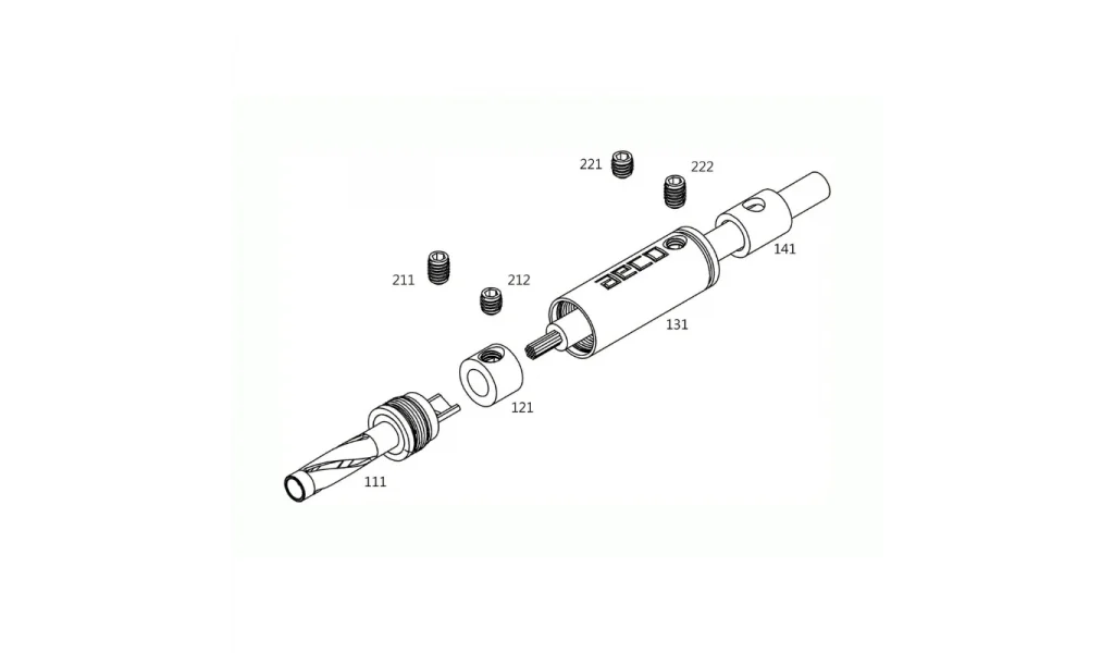 - Vida tipi için: 3.5mm'den ince veya AWG8'den kalın iletken çapları için 121 numaralı halkayı muz gövdesine takın, ardından iletkeni halkaya yerleştirin ve 211/212 numaralı vidalarla halkayı ve iletkeni sıkın.