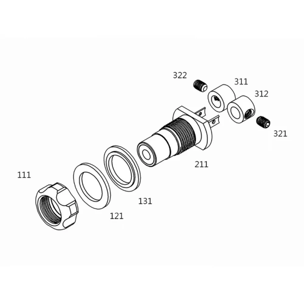 - Malzeme: Kontakt Pim: Bakır (C1100 / %99,5'ten fazla bakır içerir), Topraklama: Tellür Bakır (C14500 / %99'dan fazla bakır içerir), Yalıtım: PTFE (Beyaz), Gövde: POM (Siyah), Pul: PE (Beyaz / Kırmızı), Somun: Pirinç alaşım (C3604), Halka: Pirinç alaşım (C3604), Vida: Pirinç alaşım (C3604)