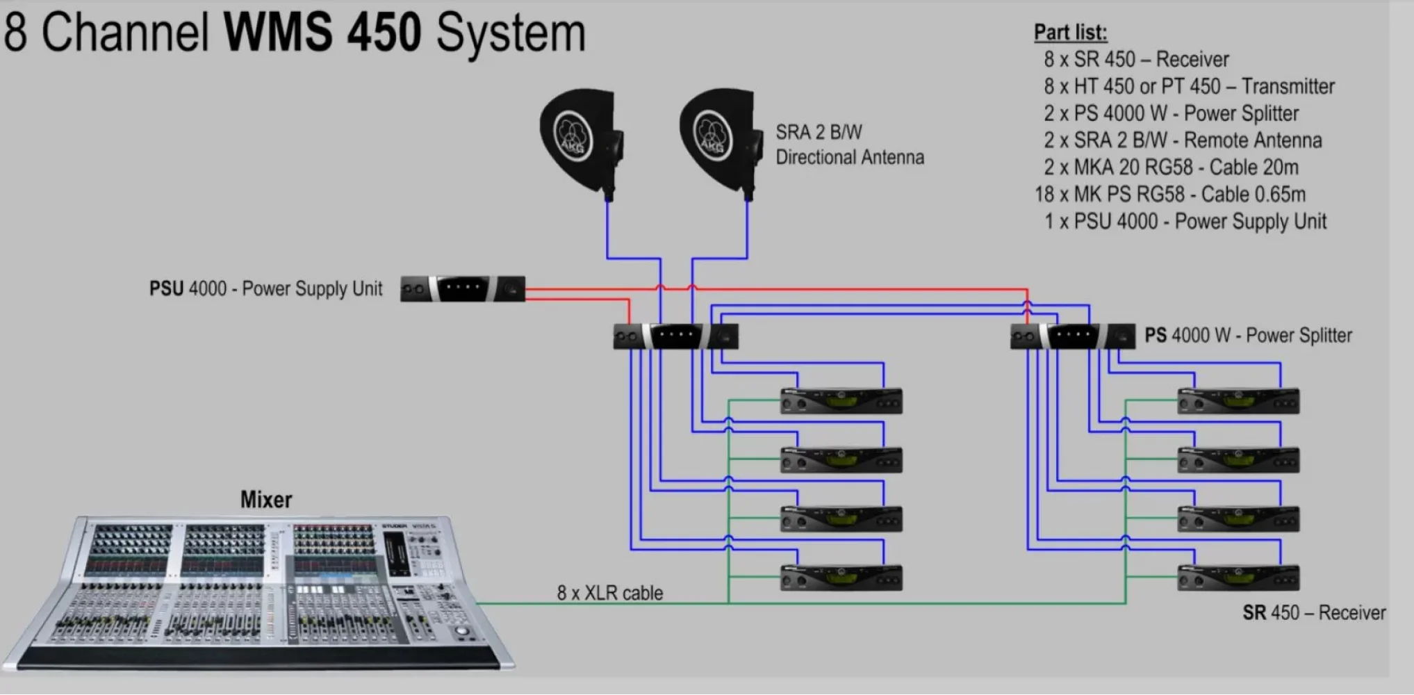 PS4000 W, bir çift antenin RF sinyaliyle en fazla beş alıcıyı beslemek için aktif bir geniş bant UHF anten dağıtıcısıdır. Bir alıcıya iletilen radyo sinyalinin gücünü ayarlayabilir. Ayarlanabilir RF seviyesi ayarları, farklı kablo uzunlukları ve farklı kablo türleri kullanıldığında bile maksimum çalışma mesafesini garanti eder. Optimum radyo gücüyle kablosuz sistemi destekler ve çok kanallı özelliği geliştirir. PS4000 W, sağlam bir yarım raf metal muhafaza içinde gelir ve tüm aktif ve pasif AKG antenleri, RA4000 B/W, RA4000 W, SRA2 B/W ve SRA2 W ile çalışır.