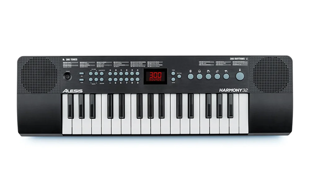 Alesis Harmony 32, başlangıç seviyesindeki kullanıcılar için hem eğlenceli hem de kolay 40 demo şarkı içerir. Daha maceracı olanlar için ise, 300 yerleşik ritimle eşlik edebileceğiniz "Eşlik Modu" bulunur. Bu özellik, bir piyano öğretmeni, arkadaş ya da aile üyesiyle birlikte çalmak için idealdir!