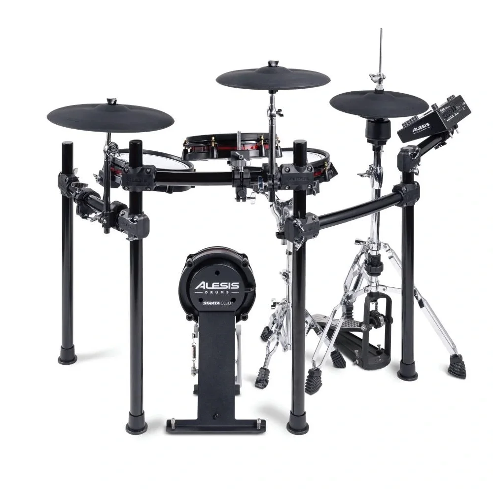 Strata Club, gerçekçi davul hissiyatı ve doğal dinamik tepki için özel olarak tasarlanmıştır. Tüm pad’lerde yüksek kaliteli file (mesh) deriler kullanılır ve gerginlik ayarı yapılabilir. Strata’ya özel geliştirilmiş anti-hotspot sensör teknolojisi sayesinde yüzeyler doğal ve dengeli tepki verir. Ride ve Crash zillerde yer alan ARC Teknolojisi, 360 derece çalma yüzeyi sunar. Davulcular tüm zilde kenar, göbek ve ortadan çalım yapabilir, ayrıca zillerin kenarından tutarak choke efektini uygulayabilirler. Aktif Manyetik Hi-Hat Kontrolcüsü ile donatılan hi-hat sistemi, stand montajlıdır ve profesyonel performans için en ince ayrıntısına kadar kontrol sağlar.