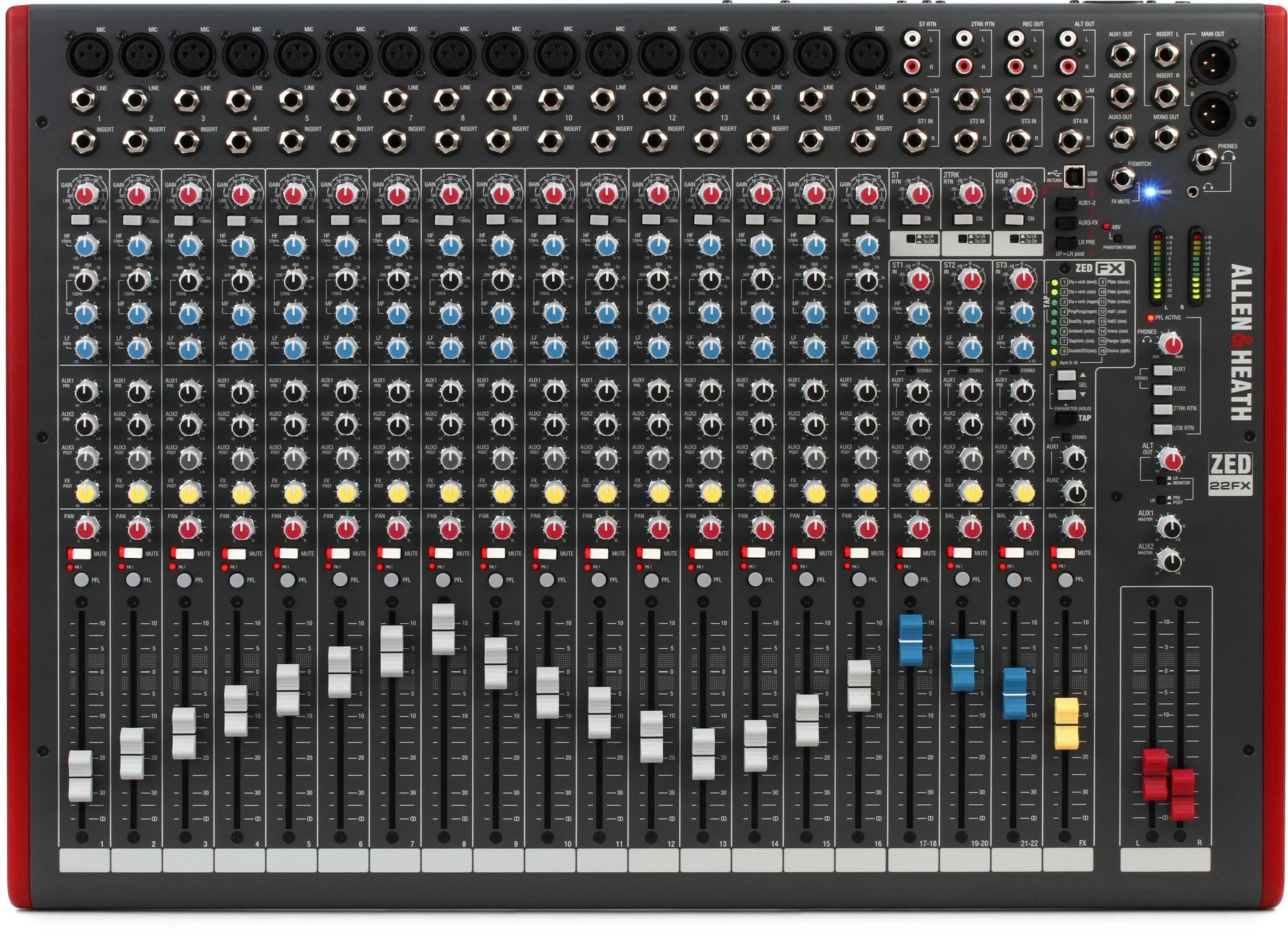 ZED-22FX features a responsive 3-band, swept mid frequency EQ design which utilises MusiQ – with optimised slope (or Q factor) for equalising individual instruments.