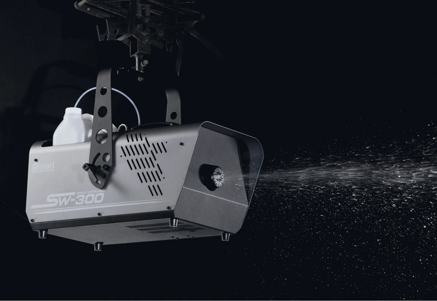 Antari SW-300 yapay kar makinesi, geniş bir alanı gerçekçi bir kar efektiyle kaplayabilen yenilikçi bir cihazdır. Antari'nin patentli nozül tasarımı sayesinde, ince kar tanelerinden yoğun bir kar fırtınasına kadar ayarlanabilir bir kar efekti sunar. Elektronik menü ve kontrol sistemi, cihazın kullanımını kolaylaştırır ve çeşitli kontrol seçenekleri sunar: dahili elektronik zamanlayıcı, DMX ile RDM, bağımsız çalışma ve dahili kablosuz uzaktan kumanda.