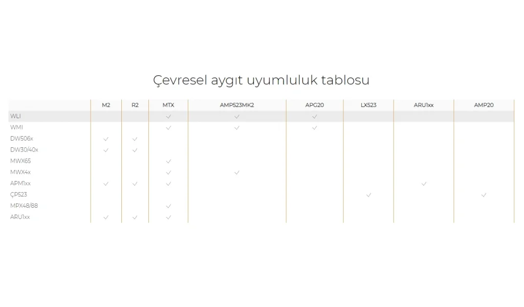 | Çıktılar | Mikrofon | Tip | 1 x Mikrofon çıkışı (Seviye değiştirilebilir 0 dB ~ -40 dB) |