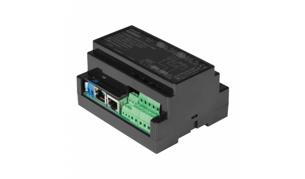 MULTI-CHANNEL DIGITAL RELAY UNIT - 4 RELAYS. Digital control, RS485, TCP/IP. Audac Touch, Standard data bus, RS485. Power consumption (max), 12 W. Dimensions(WxHxD), 159x87,5x54 mm. Weight, 0,4 kg. Power supply, 24 V DC.