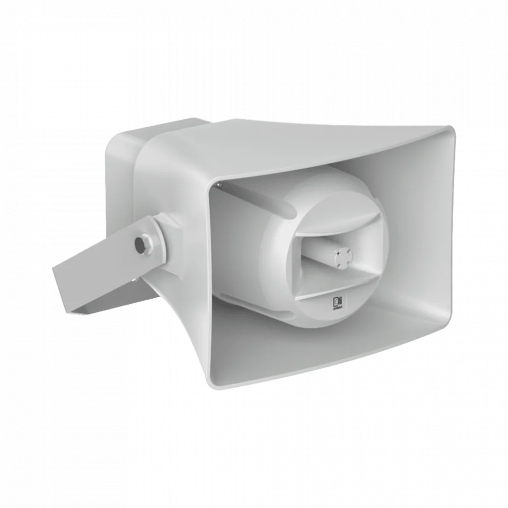 2-Way Horn Loudspeaker 30W/100 V, IP66, 5" MF/LF 1"HF, Power taps 30 / 15 / 7,5 / 3,75 W, Sensitivity (1W / 1m) 98dB, Max SPL 113dB, Frequency Response (±3 dB) 110Hz - 16kHz, Dimensions (W x H x D) 310x215x330 mm, Weight 4.7 kg