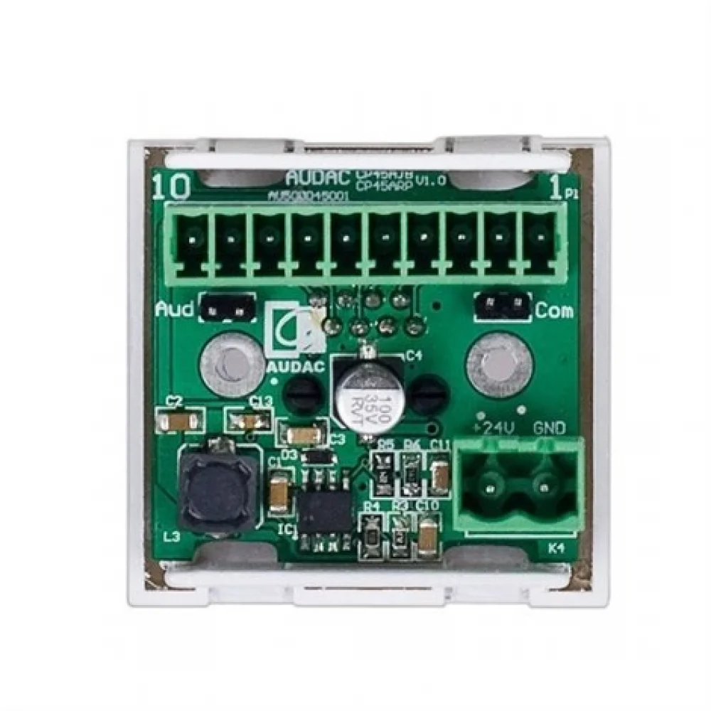 Arkasındaki anka konektörüile size bir sonraki çağrı konsolu veya bağlantı kutusuna sinyal iletim olanağı verir, CP45ARJ bir APM çağrı konsolu eklemenize olanak sağlar. Bu APM konsoluna 20V güç sunabilir ve aynı zamanda ses -veya veriyolu sonlandırmak için 2 jumper ile donatılmıştır.