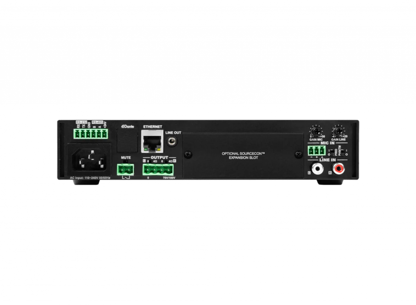 Bağlantı Seçenekleri: Line-level girişler, mikrofon girişi, optik dijital giriş, Bluetooth ve Dante ağ bağlantısı gibi çok çeşitli bağlantı seçenekleri sunar.