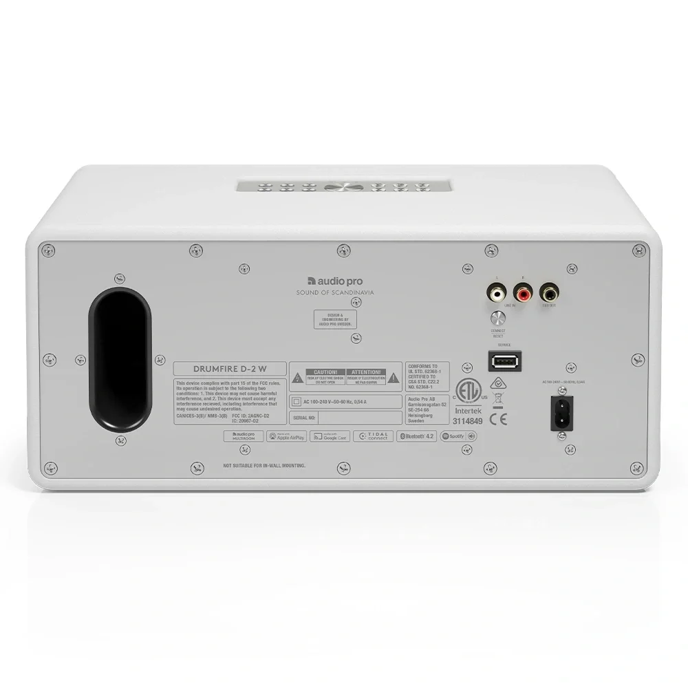 Özellik Değer Amplifikatör Gücü 2 × 20 W + 60 W Frekans Aralığı (±6 dB) 61 – 22.000 Hz Oda İçi Bas Tepkisi (-6 dB) TBA Woofer 2 × 4,5" kaplamalı kağıt Tweeter 2 × 1" yumuşak kubbe Crossover Frekansı 2500 Hz Akustik Tasarım İki yollu bass reflex Pasif Radyatör Yok Streaming Kalitesi 24 bit / 96 kHz’e kadar Uygulama İçi EQ Var Bluetooth Bluetooth 4.2 Wi-Fi 802.11 b/g/n/ac, 2.4 & 5 GHz Multiroom Desteği Audio Pro, AirPlay (1 ve 2), Google Cast Desteklenen Streaming Servisleri Amazon Music, BBC Radio, Calm Radio, Deezer, Hotmix, iHeart Radio, Napster, Open Network Stream, Pandora, Plex, Qobuz, QQMusic, Radio Paradise, SoundCloud, SoundMachine, Spotify, Soundtrack Your Brand, TIDAL, TuneIn, Vtuner, My Music (telefon), Home Music Share (yerel ağ) Ethernet Yok Analog Giriş LINE IN (RCA) Dijital Giriş (Coaxial) Yok Dijital Giriş (Optik) Yok HDMI / ARC / TV Yok USB Şarj Yok Line Out Yok Subwoofer Çıkışı Var Pil Yok Bekleme Modu Güç Tüketimi 1,7 W Boyutlar (Y × G × D) 155 × 365 × 190 mm Ağırlık 4,9 kg Kutu İçeriği Güç kablosu + kullanım kılavuzu