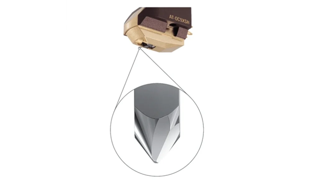 AT-OC9XSH Shibata uçlu Çift Hareketli Bobin kartuşu, üstün kanal ayrımı sağlamak üzere tasarlanmıştır. Ohno Sürekli Döküm (PCOCC) ile Saf Bakır bobinler, saf ses iletimini garanti eder ve stilyusa daha az basınç uygulayarak bozulmayı en aza indirmek için ters V şeklinde bir oluşumda hizalanmıştır. Ses kalitesi, rezonansı azaltan sağlam bir alüminyum gövde, manyetik enerjiyi artıran neodim mıknatıs ve üstün permendur kutup parçası ve kayıt oluklarını inanılmaz bir doğrulukla izleyen, zengin, tam aralıklı ses ve yüksek geçici tepki sunan bor kantilever üzerine çıplak Shibata uçlu stilus ile daha da iyileştirilmiştir. Kartuş gövdesi önceden diş açılmıştır, bu da iki vida ile bir başlığa veya entegre bir tona koluna monte edilmesini sağlar - somuna gerek yoktur.
