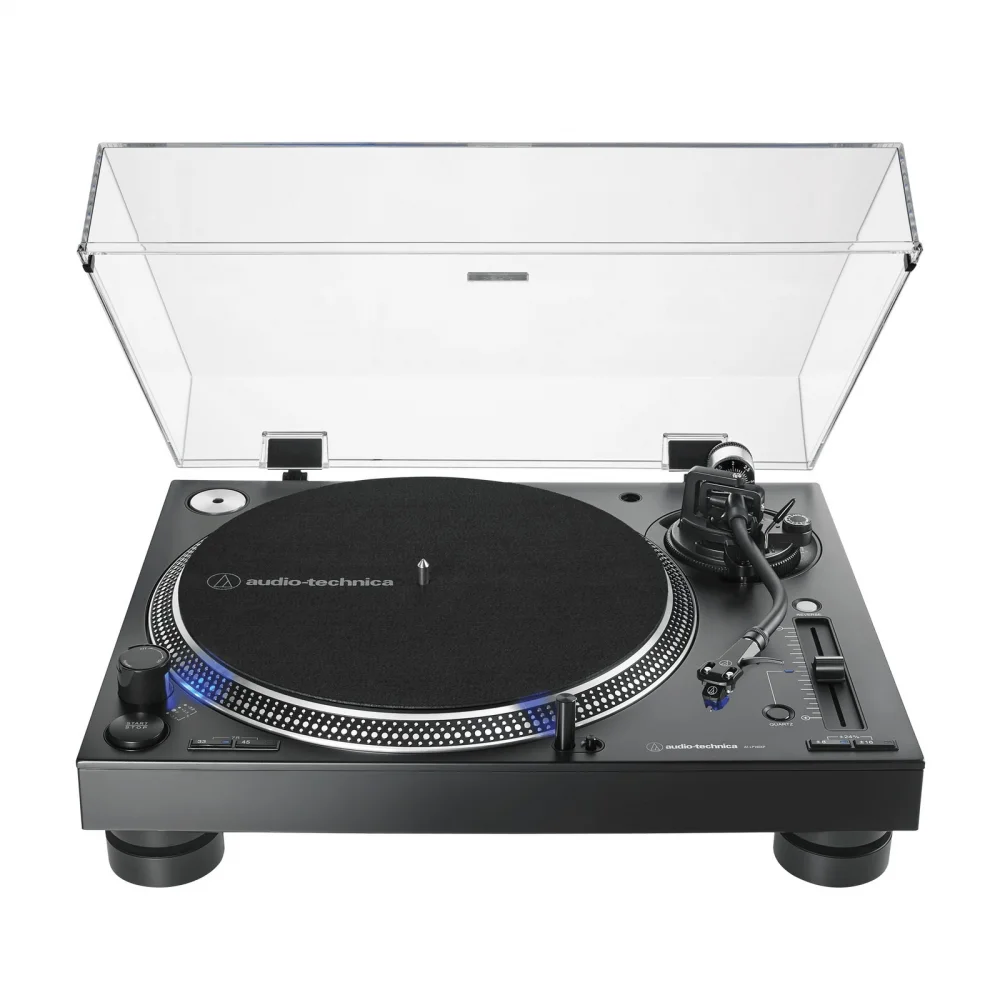 AT-LP140XP, doğrudan tahrikli, tamamen manuel ve kesinlikle profesyonel bir DJ pikabıdır. Çok yapışkan bir yüzeye sahip döküm, rezonans önleyici, alüminyum taşıyıcı, yüksek tahrik gücüne sahip bir motor tarafından tahrik edilir. Mükemmel titreşim sönümleme özelliğine sahip stabil plaka, 331/3, 45 ve 78 rpm eksende dönüşü sağlar. Döner tabla, ayarlanabilir yüksekliğe, ayarlanabilir karşı ağırlığa ve kayma önleyici kontrole sahip bir S-kol ile donatılmıştır.
