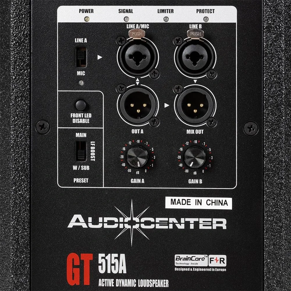 GT515A, 2× dişi XLR, Mono jak 6.35 gibi çeşitli sinyal giriş seçeneklerine sahiptir. Güç girişi IEC güç konektörü ile sağlanır. Kullanıcılar, hoparlörü çeşitli kaynaklara kolayca bağlayabilir ve kullanabilirler. Ayrıca, hoparlörün çalışma gerilimi 100V130V veya 220V240V arasında değiştirilebilir.