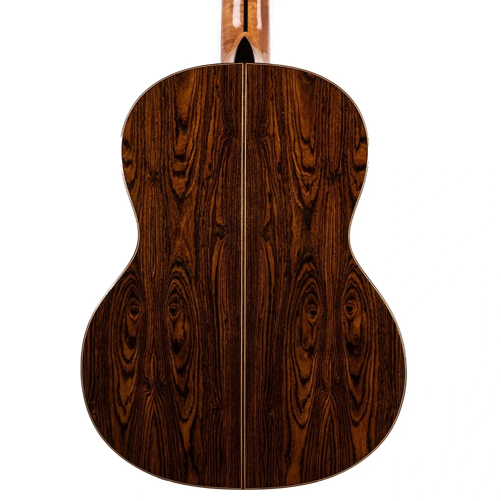 Arka ve yanlarda tercih edilen Cordia ağacı, hem görsel açıdan zarif damar yapısıyla dikkat çeker hem de sesi dengeli ve oturaklı kılar. Parlak (gloss) cila ile tamamlanan doğal renkli yüzeyler, bu gitarın sahne ışıkları altında bile şıklığını korumasını sağlar.