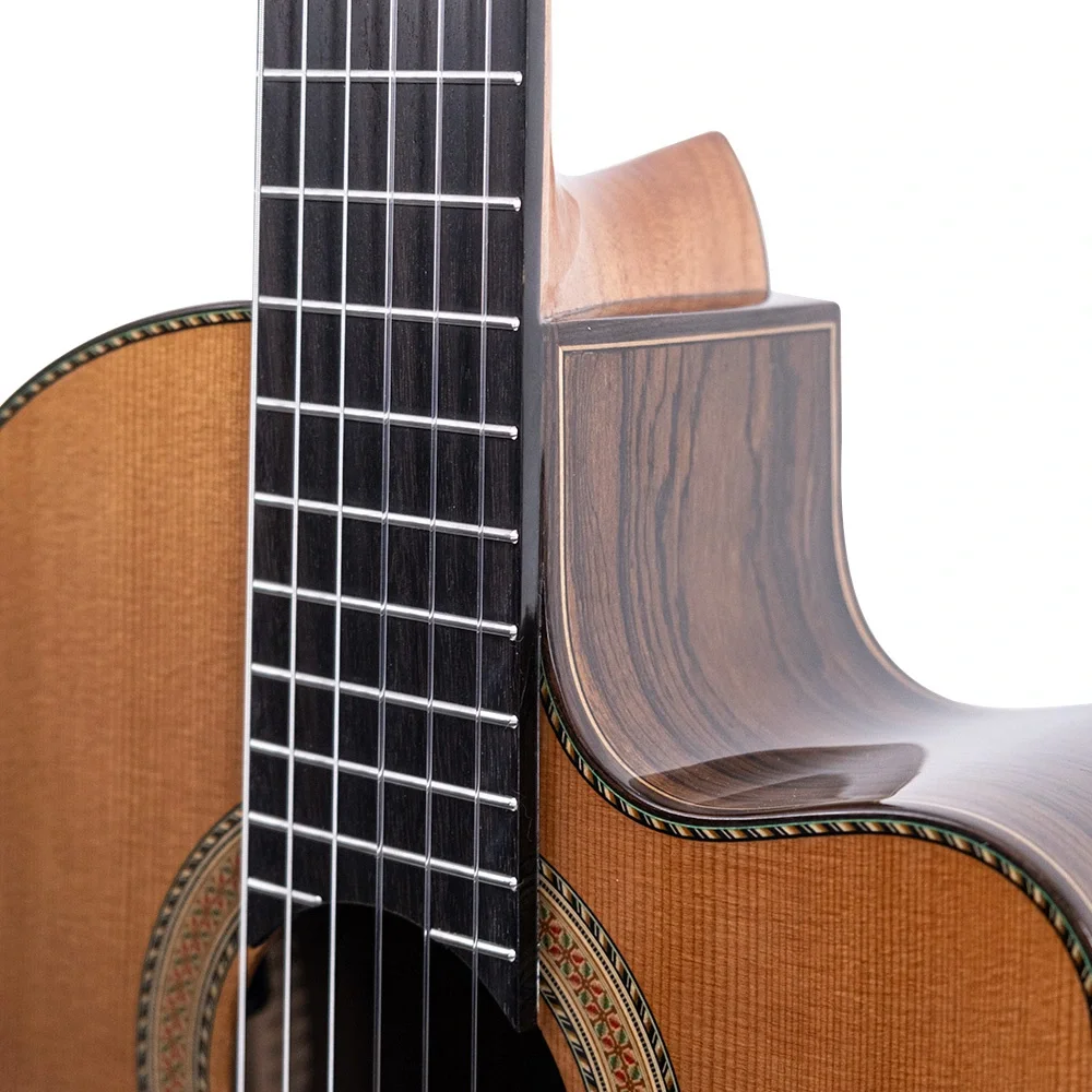 Gitarın üst kapağında kullanılan masif sedir, yumuşak ve sıcak ton üretimiyle klasik gitaristlerin favori tercihlerindendir. Özellikle parmak stilinde çalan müzisyenler için detaylı ve dolgun bir ses karakteri sunar. Geniş frekans yanıtı sayesinde klasik, Latin, flamenko ve solo performanslarda üstün performans sağlar.