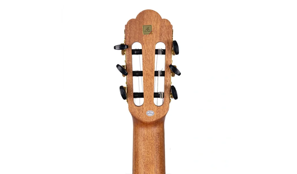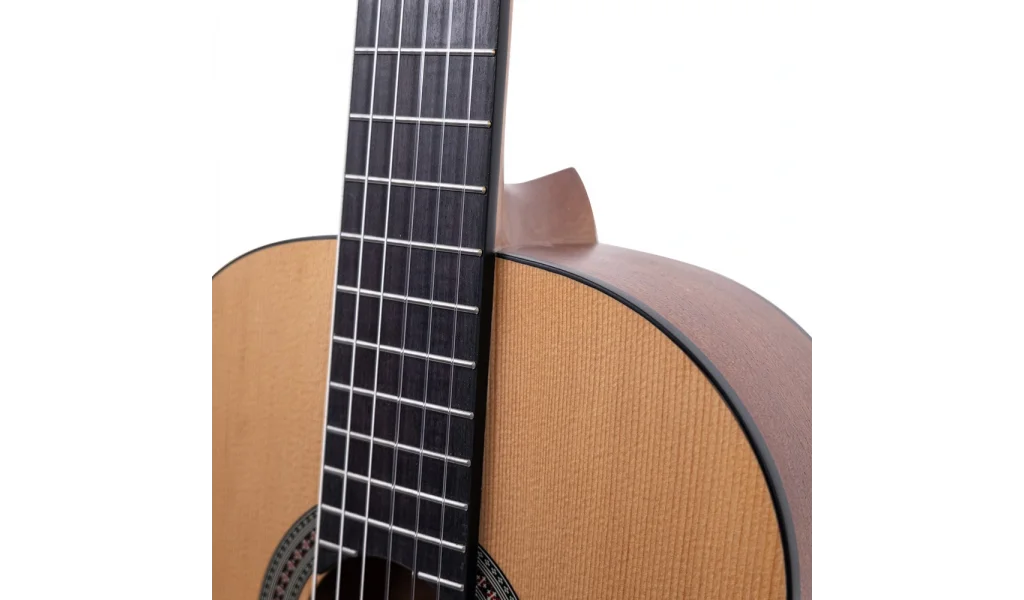 Perdede gövdeyle birleşen sap, maun malzeme ile üretilmiş olup 52 mm genişliği sayesinde klasik gitar tekniklerine tam uyumludur. Mat cilası ve ABS siyah sap bağlaması, çalım sırasında kaymayı önleyerek konfor sağlar.