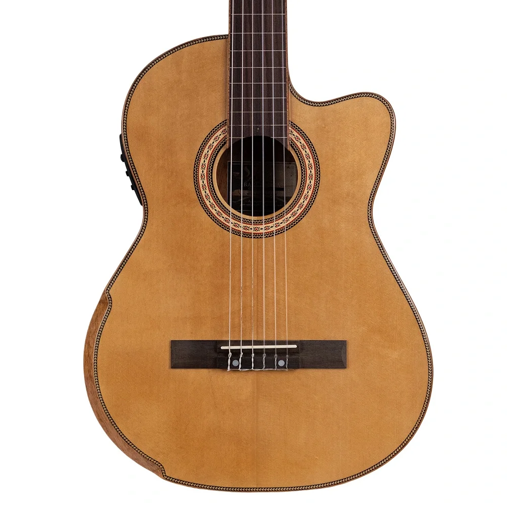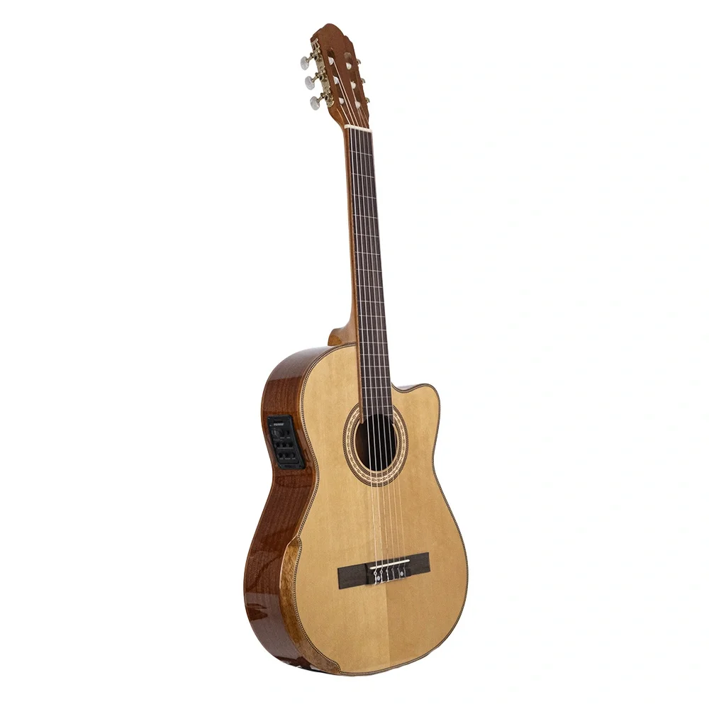 Yerleşik manyetik sistemi sayesinde sahnede ya da stüdyoda güçlü, net ve dengeli bir ses elde edersiniz. Amfiye bağlandığında klasik gitarın doğal tonları, elektro gitarın enerjisiyle birleşir. Hem akustik hem elektro özellikleriyle çok yönlü performans sunar.