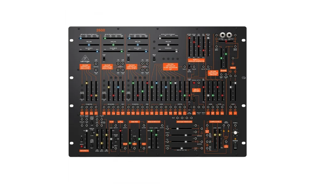 | Sliders | İlk filtre frekansı İnce ayar Rezonans Halka modülatörü VCO 1 (pulse) VCO 2 (pulse) VCO 3 (saw) Gürültü jeneratörü Klavye CV'si ADSR VCO 2 (sinüs) |