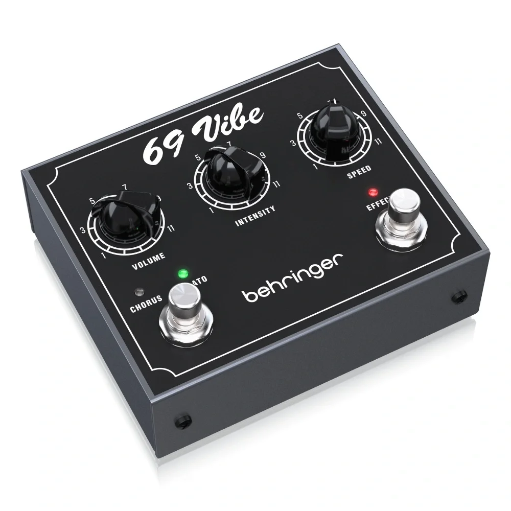Tıpkı orijinali gibi olan 69 VIBE, tek bir ayak pedalı ile Chorus ve Vibrato modları arasında geçiş yapmanıza olanak tanır. Bu özellik, özellikle sahne performanslarında mod değişimini oldukça kolaylaştırır. Chorus modunu seçerek klasik Hendrix havasını yakalayabilir, Ya da Vibrato ile sese yukarı-aşağı yön vererek tonunuza hareket ve nabız gibi bir titreşim kazandırabilirsiniz. Her iki efektin de derinliği ve hızı, pedaldaki Speed (Hız) ve Intensity (Yoğunluk) düğmeleriyle kontrol edilir.