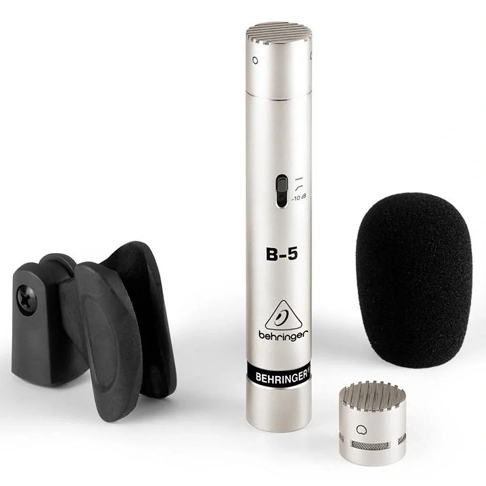 B-5, altın püskürtmeli diyaframlı yoğunlaştırıcı mikrofonu sizin için çalıştırmanın uygun fiyatlı, yüksek kaliteli bir yoludur. Değiştirilebilir iki kapsülle birlikte gelir: mikrofonun her tarafındaki sesi almak için çok yönlü ve eksen dışı sesi kapatırken kaynak sinyalini almak için kardiyod.
