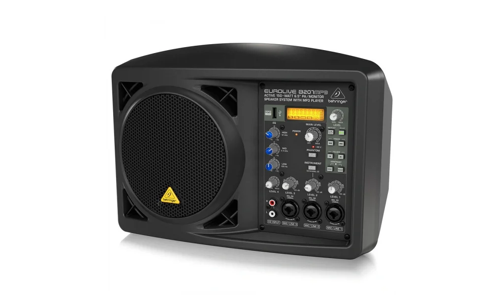 Behringer EUROLIVE B207MP3, kompakt ve çok yönlü aktif PA/monitor hoparlörüdür; 6.5 inç neodimyum driver ve entegre MP3 player ile donatılmıştır. Küçük ölçekli canlı performanslar, sahne monitörü, konferanslar, partiler veya kişisel PA sistemleri için idealdir – mikrofon standına monte edilebilir tasarımıyla sahne alanını optimize eder.