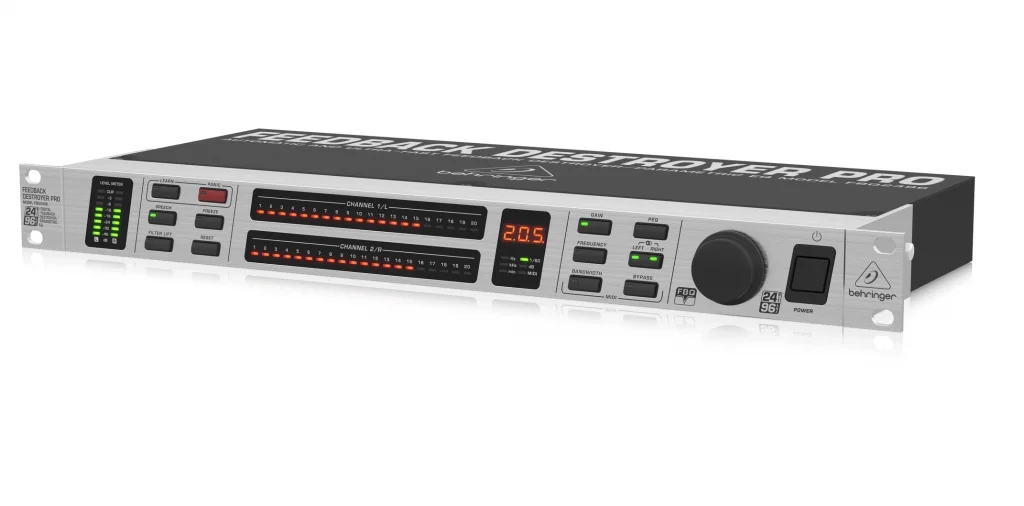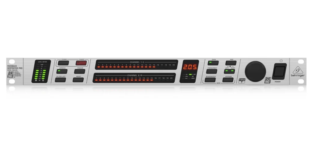 FBQ2496 Feedback Destroyer PRO, piyasadaki en hızlı feedback bastırıcıdır (0,2 saniyeden kısa sürede tepki verir) ve 96 kHz örnekleme oranı sunan tek modeldir. Bu rack-mount ses çözümü, feedback engellemenin hızlı ve kolay bir yoludur.