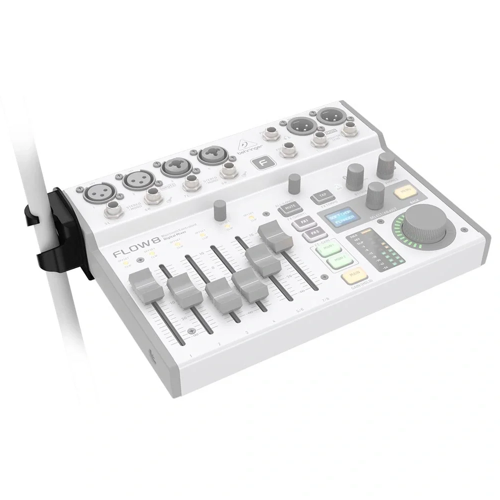 FLOW CLAMP, performansınız sırasında FLOW mikserinizi ulaşabileceğiniz bir yere getirmek için tasarlanmıştır. Küçük bir kulüp konseri için sahnede veya bir kayıt kurulumunda, en iyi yer genellikle mikrofon standınızın hemen yanı olacaktır. Gereksiz kablo karmaşasını önler ve FLOW mikserinizin kontrol yüzeyini sürekli erişilebilir tutar. Kelepçe, standart 5/8" mikrofon standları çapı için tasarlanmıştır (16,5 mm'yi aşmaz).