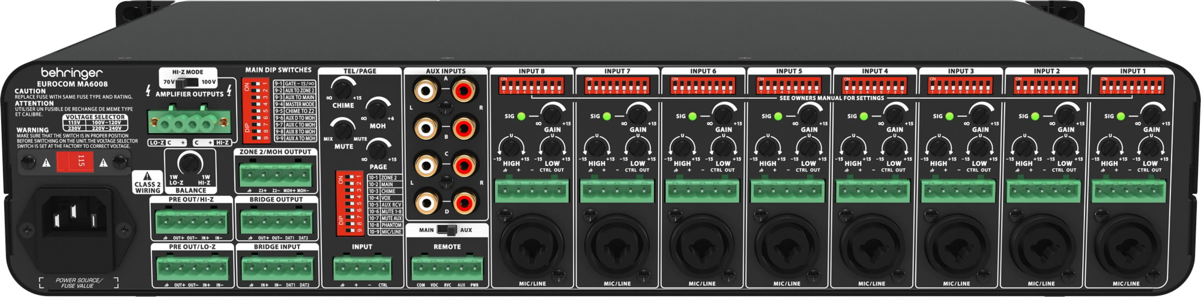 (MA6008) auto-mixing amplifiers with dual 70/100 V