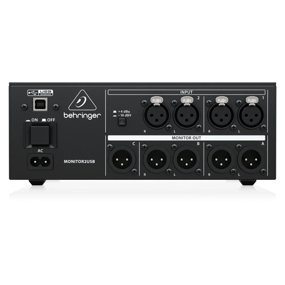 Kayıt veya mix yapma zamanı geldiğinde, izleme sisteminizden en iyi ses kalitesini almak istersiniz ve son isteyeceğiniz şey, kabloları bağlamak için masanın altına eğilmektir. MONITOR2USB, VCA kontrollü Ses, Kaynak seçimi, Kulaklık ve Monitör kontrolünü doğrudan parmaklarınızın ucuna getirerek sizi bu zahmetten kurtarır. Bu inanılmaz cihazla 3 farklı aktif stüdyo monitörü, 2 farklı stereo kaynağı ve DAW için bir USB girişi seçebilir, güçlü ve özel izleme miksleri oluşturabilirsiniz – üstelik hepsi audiophile kalitesinde!