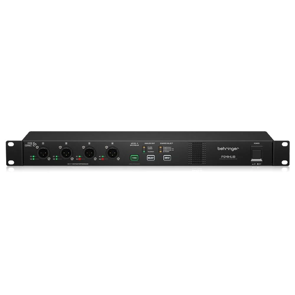 Gelişmiş Dijital Bağlantı Desteğiyle Üst Düzey Entegrasyon Behringer P24HUB, kişisel Monitör mikser sistemlerinin omurgası olarak işlev gören gelişmiş bir dağıtım ünitesidir. AES50 ve StageConnect gibi modern dijital protokollerle donatılmış bu cihaz, 24 kanala kadar yüksek kaliteli ses sinyalini sorunsuzca iletebilme kabiliyetine sahiptir. Arka panelinde bulunan 2 x RJ45 AES50 bağlantısı sayesinde hem HOST/Master/Thru hem de senkronizasyon hatları kolayca yönetilebilirken, 2 x RJ45 ULTRANET bağlantı noktası ile Behringer’in Powerplay sistemleriyle tam uyumluluk sağlar. Ayrıca USB Tip B bağlantısı sayesinde bilgisayar entegrasyonu da mümkündür.