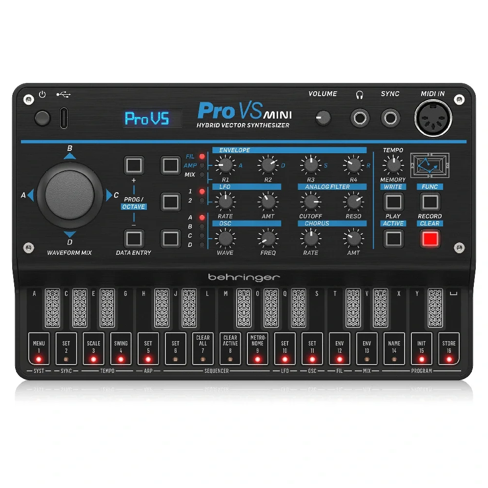 Cihaz, 27 dokunmatik hassasiyetli tuşu sayesinde küçük boyutlarda maksimum çalınabilirlik sunar. Ayrıca kolay programlanabilir 16 adımlı bir sequencer, stüdyo kalitesinde chorus efekti, filtre, amplifikatör ve osilatör için ayrı zarflar ile 2 güçlü LFO’ya sahiptir. Tüm bunlar, PRO VS MINI’yi taşınabilir, güçlü ve çok yönlü bir ses tasarım cihazı yapar.