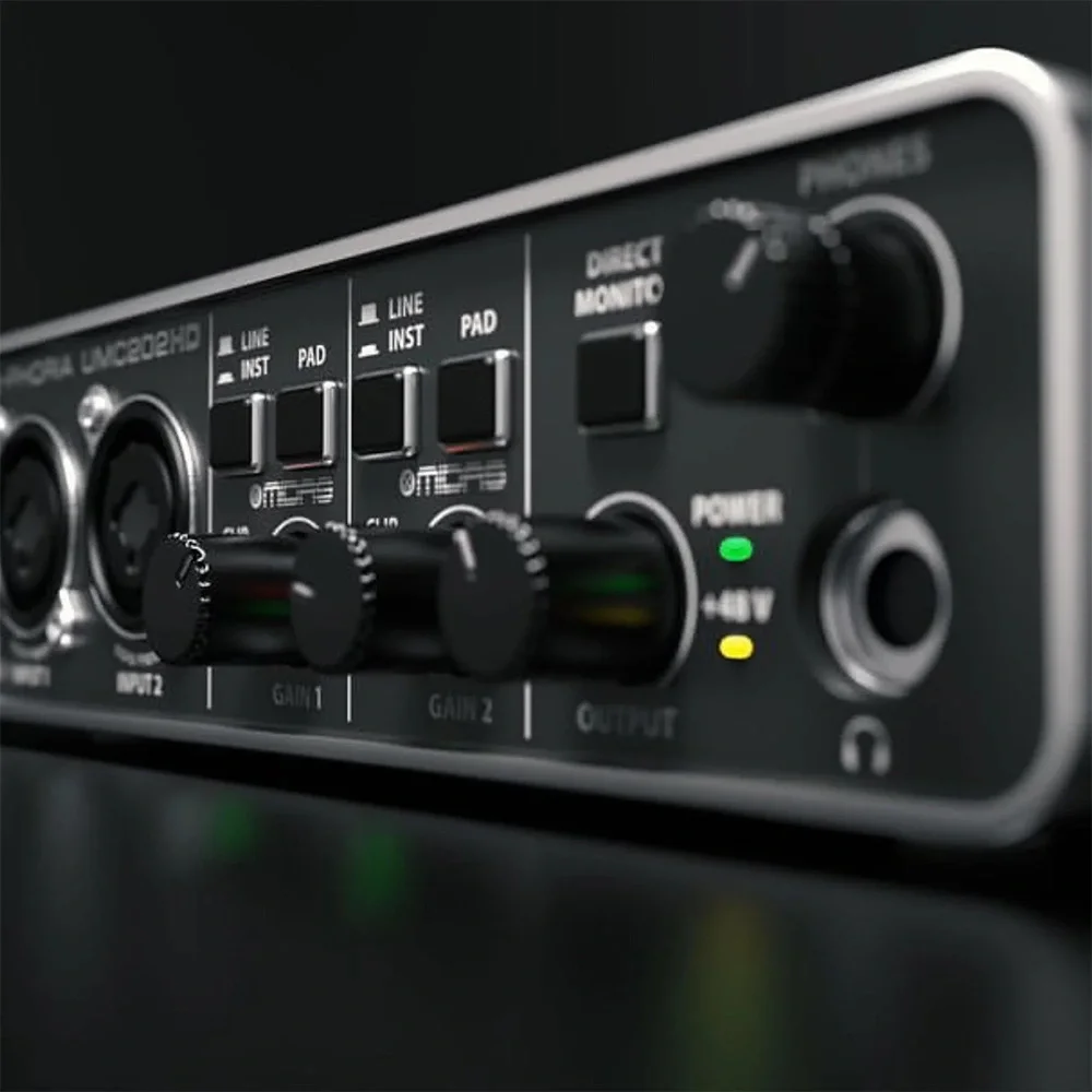 UMC202 miks kontrolü, doğrudan monitör seçimine izin verir. Bu da müzisyenlerin performanslarını net bir şekilde deneyimleyebilecekleri anlamına gelir. Bu da daha iyi bir performans ve kayıt sağlar. Güçlü kulaklık çıkışı, doğrudan monitör seçme anahtarı, durum ve sinyal klipsi LED'leri ve ayrıca USB tarafından sağlanan güç ile UMC202, gittiğiniz her yere eşlik etmeye hazırdır.