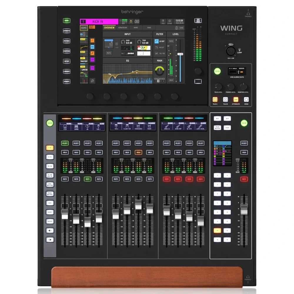 Büyük dokunmatik ekran ve döner kontrol düğmeleri, parametre ayarlamalarını sezgisel hale getirerek tam boyutlu WING konsolunun ünlü kullanıcı arayüzünü sunar.