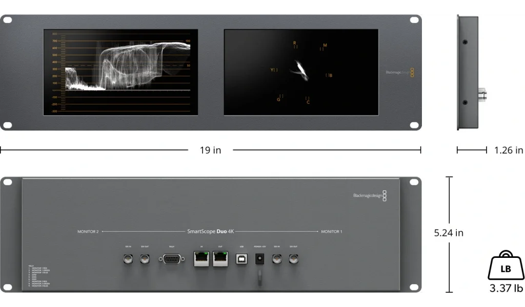 Blackmagic Design SmartScope Duo 4K Rack montajlı Çift 6G-SDI Monitör.