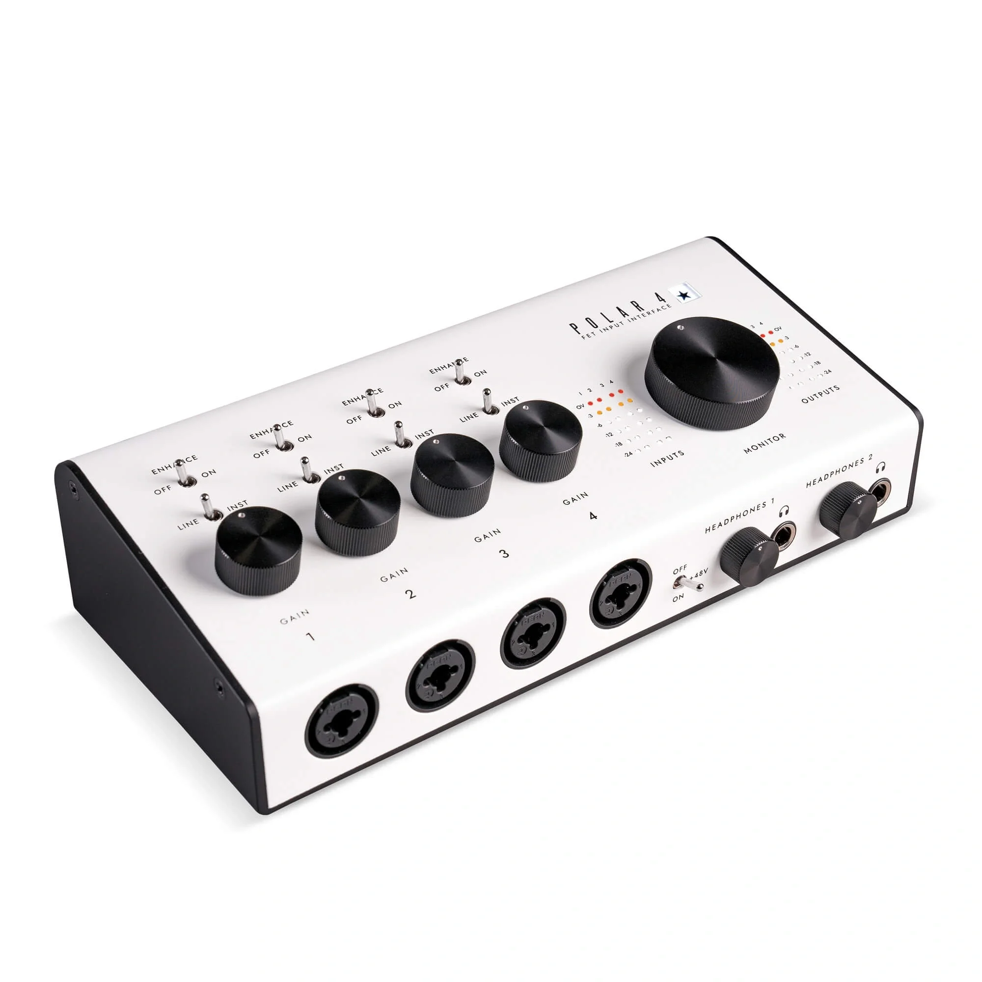 POLAR 4, gitaristler tarafından gitaristler için tasarlanmış 2 kanallı bir USB ses kartıdır. Enstrüman, line ve mikrofon için 2 yüksek headroom FET giriş kanalı, yüksek çıkışlı kulaklık preamp, condenser mikrofonlar için +48V fantom güç, profesyonel monitörleme için dengeli çıkışlar, görsel seviye ölçerler ve tescilli “Enhance” anahtarı ile donatılmıştır.