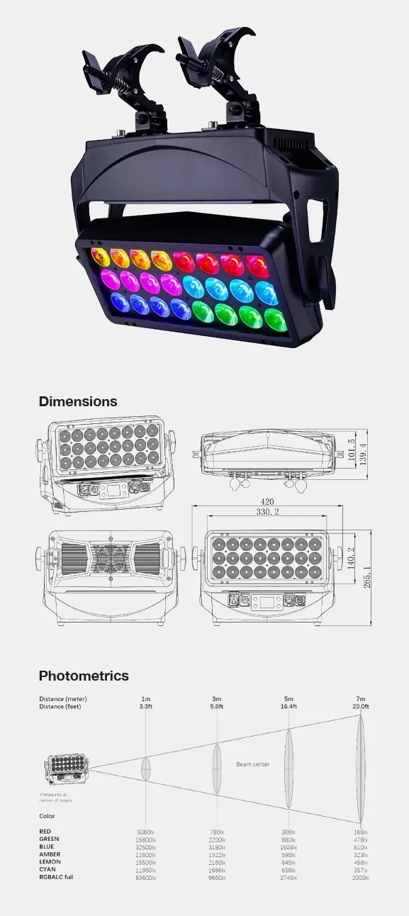 | Işık Kaynağı | 24 × 20W RGBW 4-in-1 LED |
