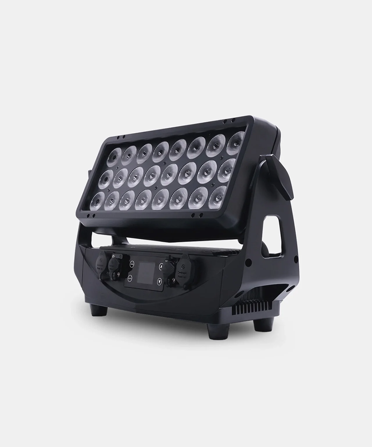 BLAZE 24X, profesyonel TV yayıncılığı, film yapımı, konserler ve dış mekan etkinlikleri için tasarlanmış yüksek performanslı LED flood light'tır. 24 adet 20W RGBW (Red, Green, Blue, White) LED ile olağanüstü renk doğruluğu ve yumuşak geçişler sağlar. IP65 koruma sınıfı, titreşimsiz çalışma ve 50.000 saat LED ömrüyle zorlu koşullarda güvenilir performans verir. İsteğe bağlı lensler ve barndoorlarla hassas ışık kontrolü sunar – stüdyo ve sahne profesyonellerinin vazgeçilmezi.