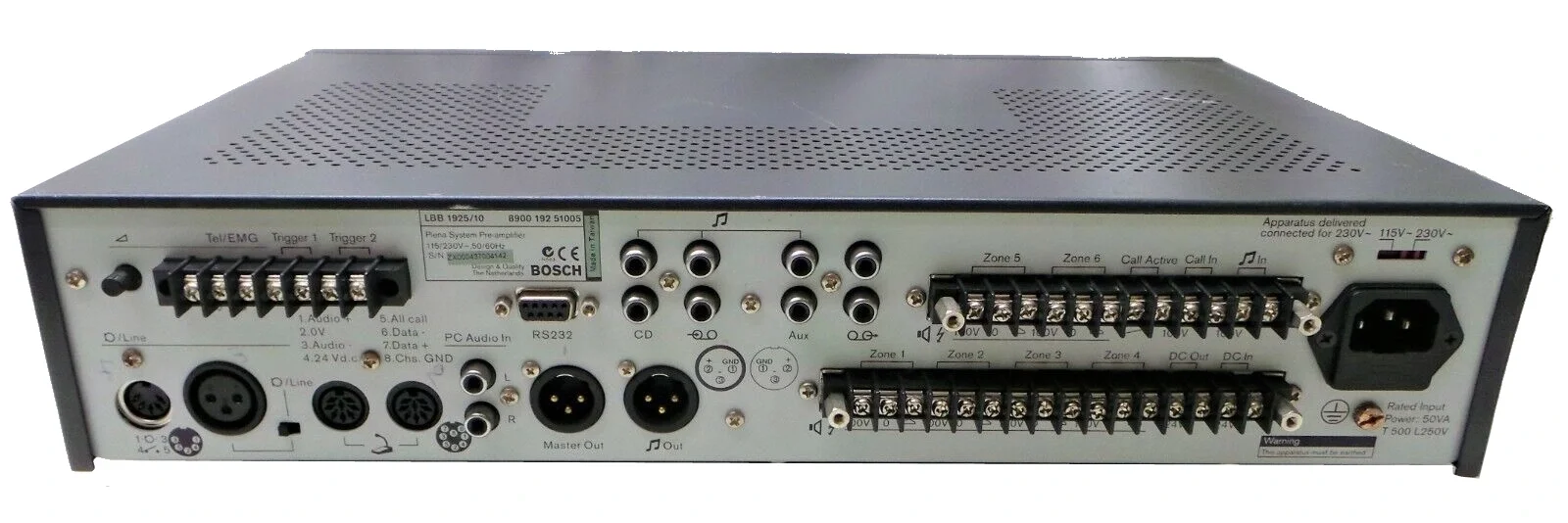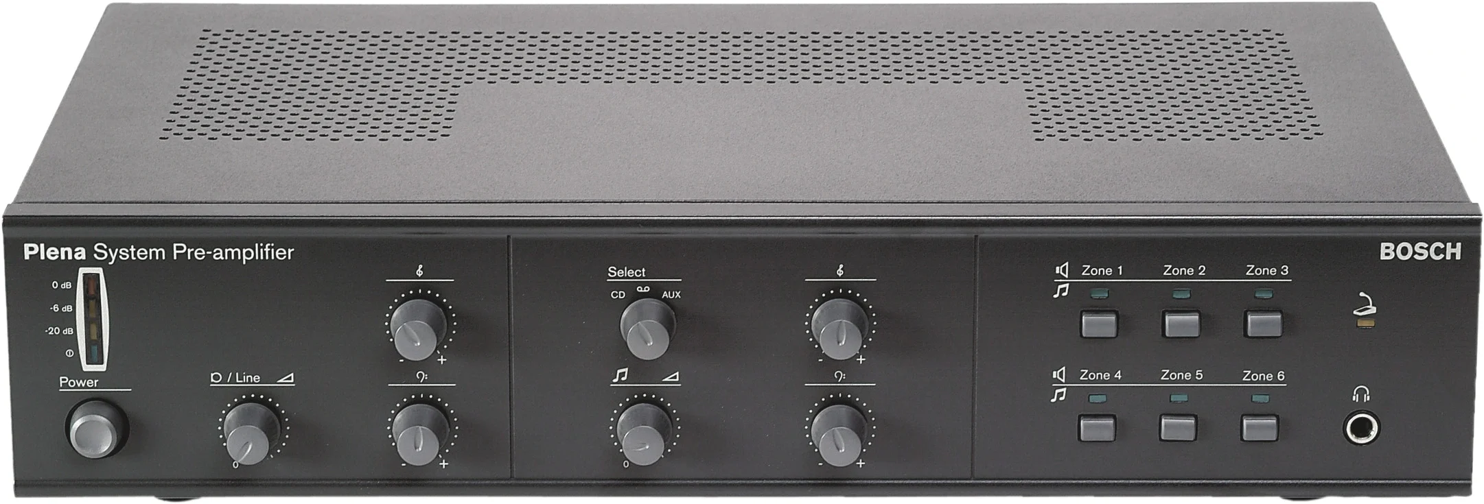 Bosch LBB1925/10, Plena serisinin 6 zonlu sistem preamplifier'ıdır. Kamu anonsu (PA) ve background müzik (BGM) uygulamalarında (okullar, oteller, hastaneler, alışveriş merkezleri) zon bazında ses dağıtımı için tasarlanmıştır. Harici power amplifier'larla entegre çalışır; call station'lar ve müzik kaynaklarını yönetir, tek veya çift kanal modunda esnek kullanım sağlar.