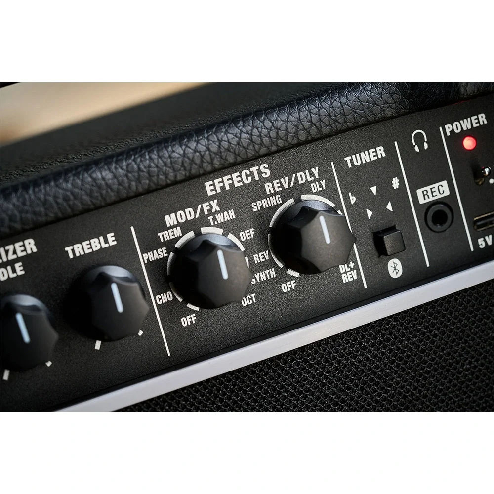 TEKNİK ÖZELLİKLER Nominal Güç Çıkışı10 WNominal Giriş SeviyesiGİRİŞ: -10 dBu (1 M ohm)Hoparlör12 cm (5 inç)KontrollerPOWER, TYPE, VARIATION, GAIN, VOLUMEEkolayzırBASS, MIDDLE, TREBLEEfektlerMOD/FX, REV/DLYTuner/BluetoothTUNER/Bluetooth butonuGöstergelerPOWER, VARIATION, TUNER/BluetoothBağlantılarGİRİŞ jakı: 1/4 inç fiş tipi, PHONES/REC jakı: Stereo mini fiş tipi, 5 V (DC IN) portu: USB Type-CBluetooth Profil DesteğiA2DP (Ses)Güç KaynağıŞarj edilebilir pilAkım Çekişi1500 mABeklenen Pil ÖmrüYaklaşık 10 saatPil Şarj SüresiYaklaşık 3 saatAksesuarlarUSB Type-C'den USB Type-A'ya şarj kablosuBoyutlarGenişlik: 287 mm (11-5/16 inç), Derinlik: 145 mm (5-3/4 inç), Yükseklik: 200 mm (7-7/8 inç)Ağırlık2.7 kg (6 lbs)